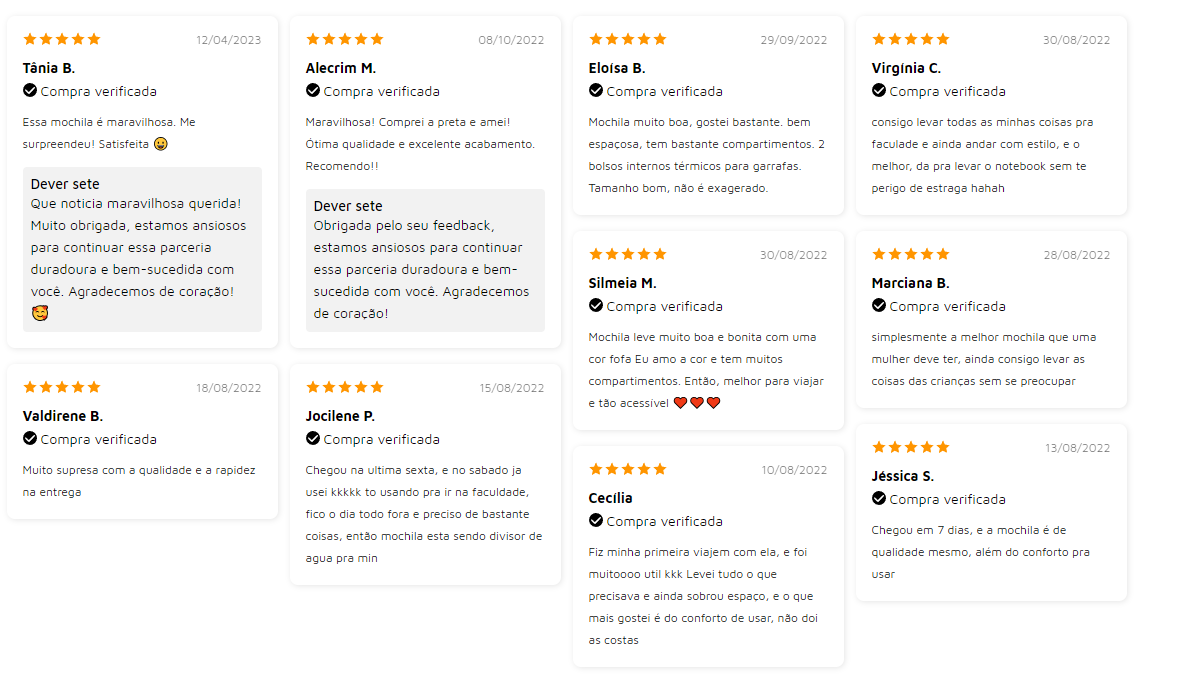 Sinto-me segura ao comprar aqui. A qualidade éexcelente e tudo corresponde ao prometido. Comcerteza voltarei a comprar.